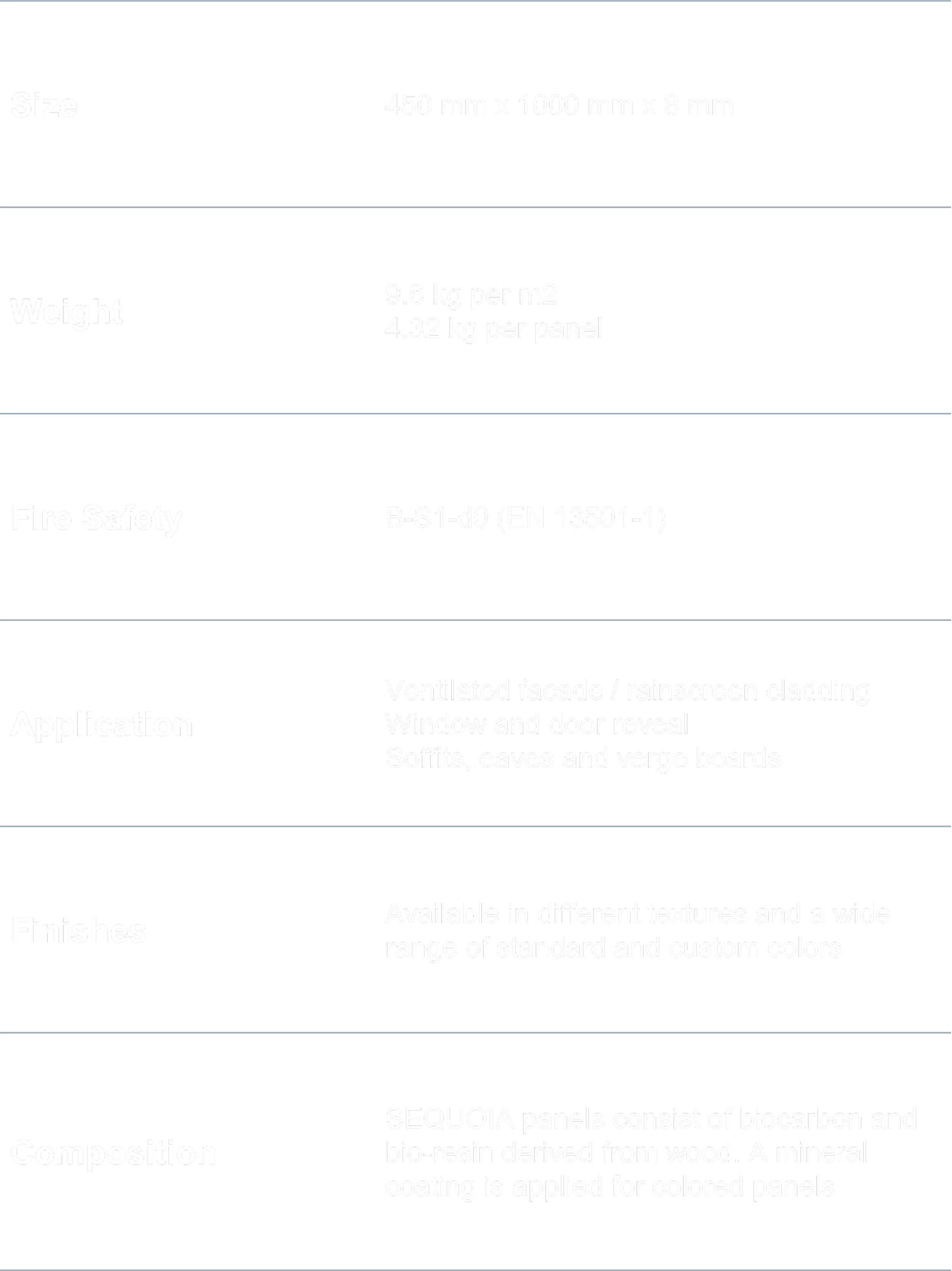 Made of 100% bio-material, Sequoia façade panels are composed of biocarbon, using Made of Air’s unique functionalization technology. The mix of biocarbon and bio-resin derived from wood yields a highly durable panel with excellent fire resistance and outstanding decarbonization.